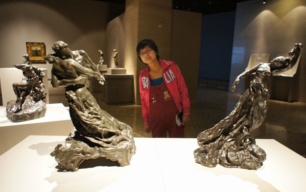 第一次去的时候娟怀孕已经8个多月,所以每走一会她就累得得休息,我们当然还是租了导览器,但是幸运的碰到了义务讲解员周老师,她这次并没有讲解,但正在为下次的正式讲解做准备,所以他们几个人一边观赏艺术品,一边描述和讨论,我和娟就在旁边跟着听。周老师对艺术品欣赏的感觉,毫无疑问感染了我和娟,我们也尝试着从感官上去体会新古典主义时期,学院派在绘画和雕塑上,带给人的无与伦比的美的体验。在罗丹和他的情人克洛岱尔的雕塑面前,周老师提了一句,说可以回去看看一部描绘克洛岱尔的片子,里面的女主角非常有气质。
