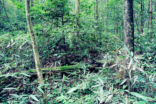 路边树木很多,有种笔直上天的,只在顶上有些分支和树叶的,是在北京皇家园林大量使用的楠木,当年土司王挑选了上好的作贡品送往京城而得到了丰厚的奖赏。由于现在限制了砍伐,所以自然的生灭,让有些树干就倒在那里,笔直横着,覆满青苔,让人想起通往玉龙雪山云杉坪的路上,也是同样的景象。