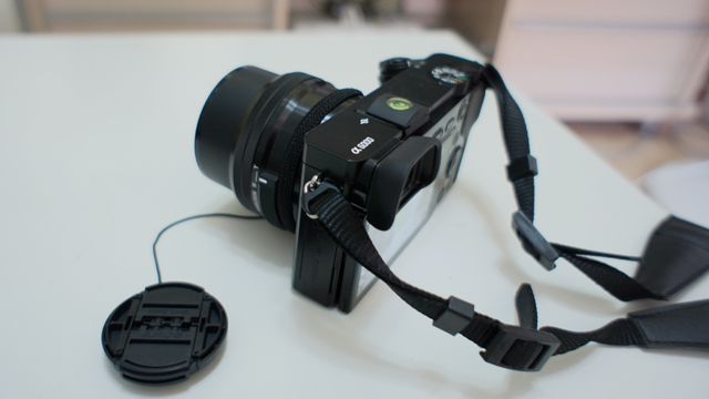 真容出来了。镜头盖上的那个防丢绳挺有意思,一端粘在镜头盖上,另一端橡胶绳套在镜头上,这样镜头盖就丢不了了。不过粘贴部分质量不好,我剪了片双面胶才终于贴上。